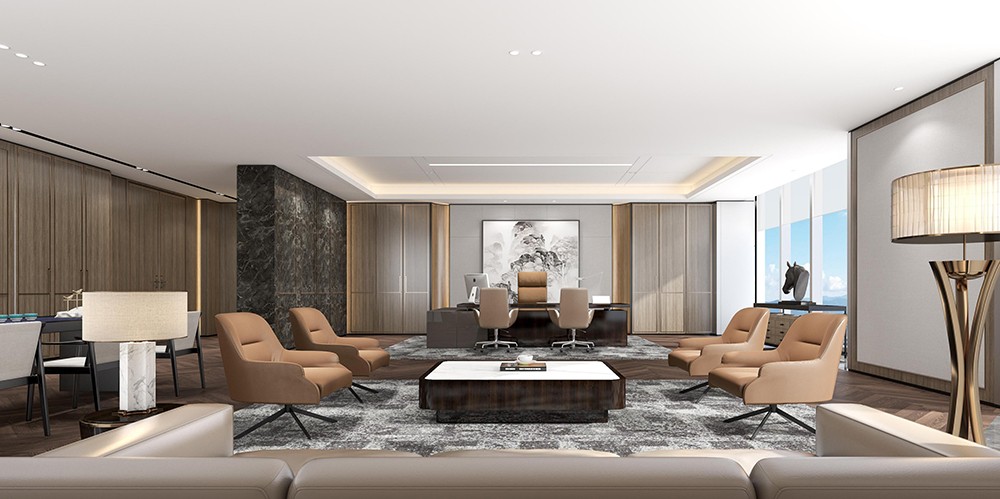 設(shè)計(jì)理念:運(yùn)用現(xiàn)代簡約風(fēng)格,打造出一個(gè)明亮、寬敞、舒適的辦公環(huán)境。前臺(tái)的朗闊,帶來視覺上的感官提升,讓到訪者眼前一亮。隨著辦公區(qū)域動(dòng)線的規(guī)劃,使用者的舒適感與高效感,逐漸呈現(xiàn),思維也隨之流轉(zhuǎn)。老板辦公室與貴賓室,采用了更為成熟的簡中式風(fēng)格,簡約不簡單,穩(wěn)重不沉悶。