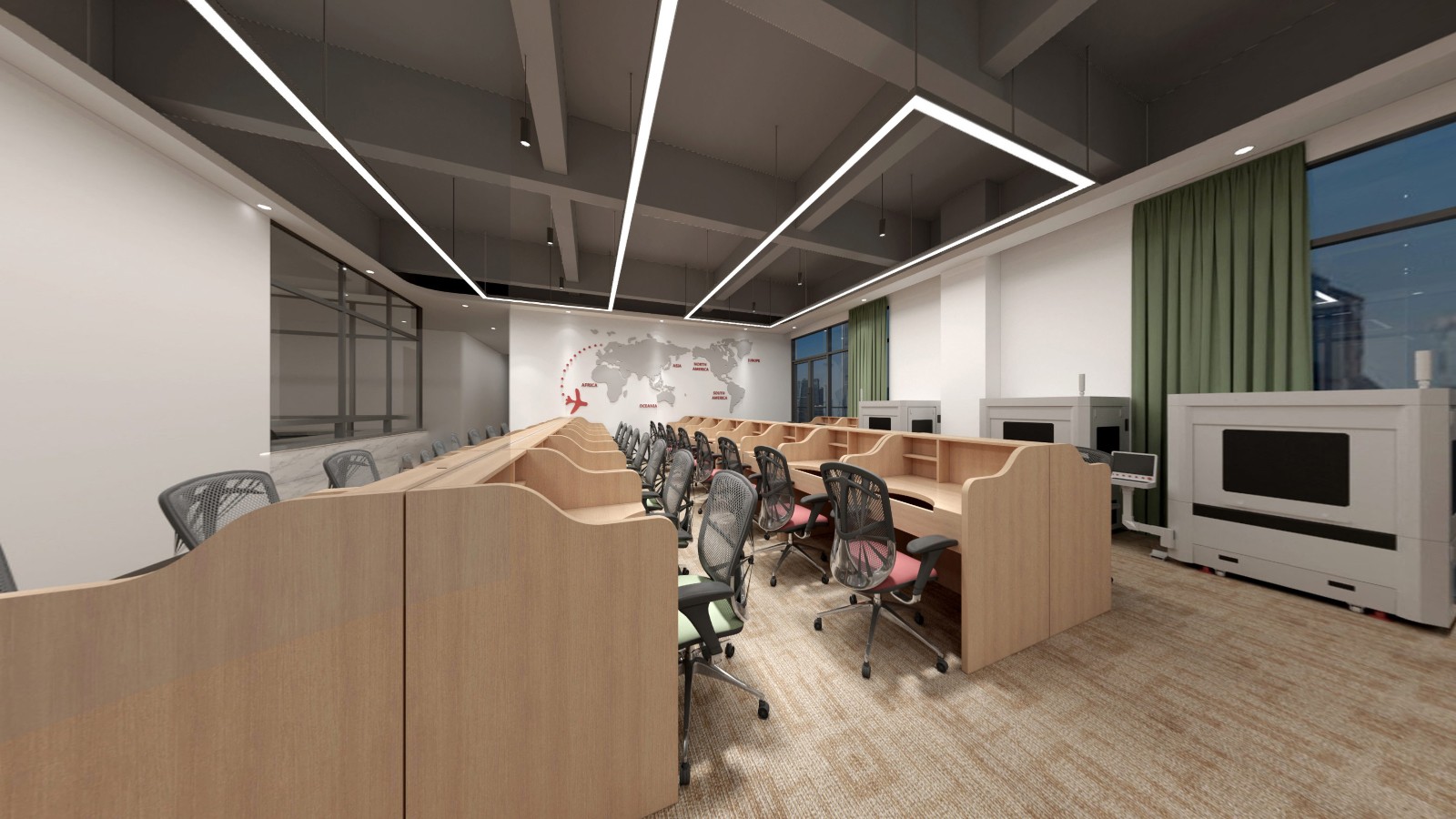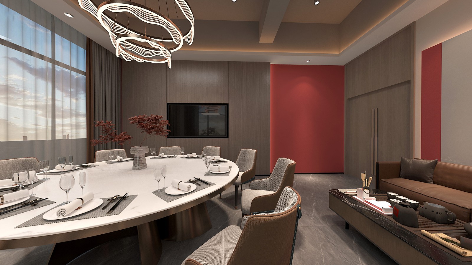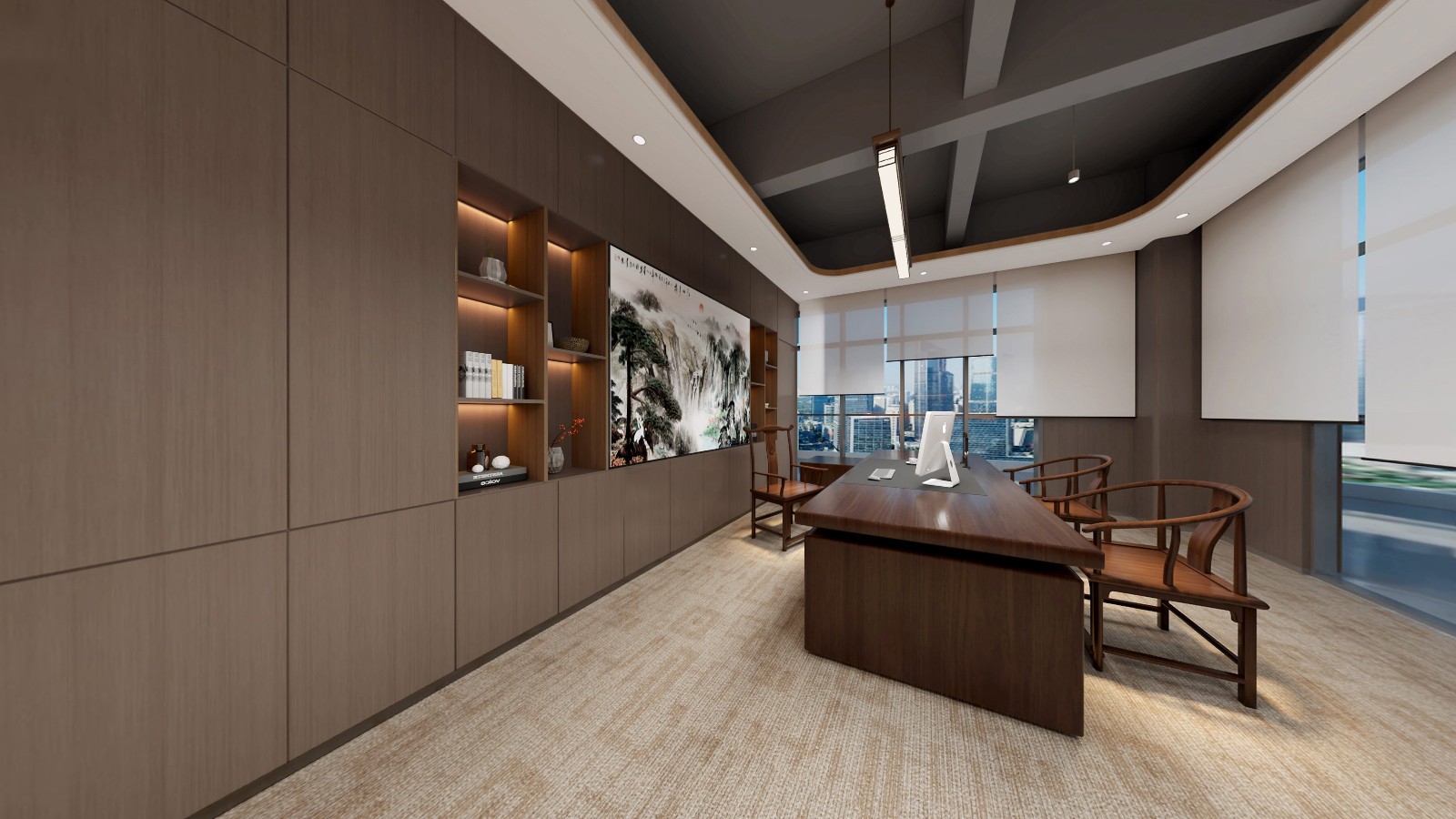 辦公區(qū)域延續(xù)采用了新中式的設(shè)計(jì)風(fēng)格,簡化了繁雜的裝飾,加入了少量的幾何元素進(jìn)行點(diǎn)綴,為古典文藝的辦公空間融入了商務(wù)元素,同時(shí)也滿足了現(xiàn)代辦公的功能性和審美需求,創(chuàng)造出一個(gè)既典雅又高效的工作環(huán)境。