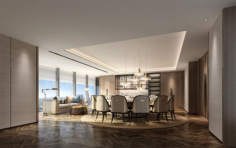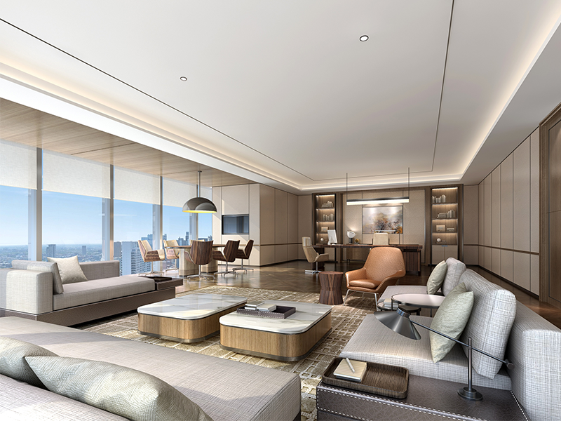 本方案的設(shè)計(jì)強(qiáng)調(diào)傳統(tǒng)文化與現(xiàn)代審美的結(jié)合,既保留中式的典雅與韻味,又融入現(xiàn)代設(shè)計(jì)的簡約與時(shí)尚通過巧妙的布局和隔斷,使用中式屏風(fēng)、工藝隔斷、簡約博古架等,增強(qiáng)空間的層次感和流動(dòng)性,使空間更加靈動(dòng)通透。且多種形式的接待空間,滿足不同形式的商務(wù)接待場(chǎng)景。