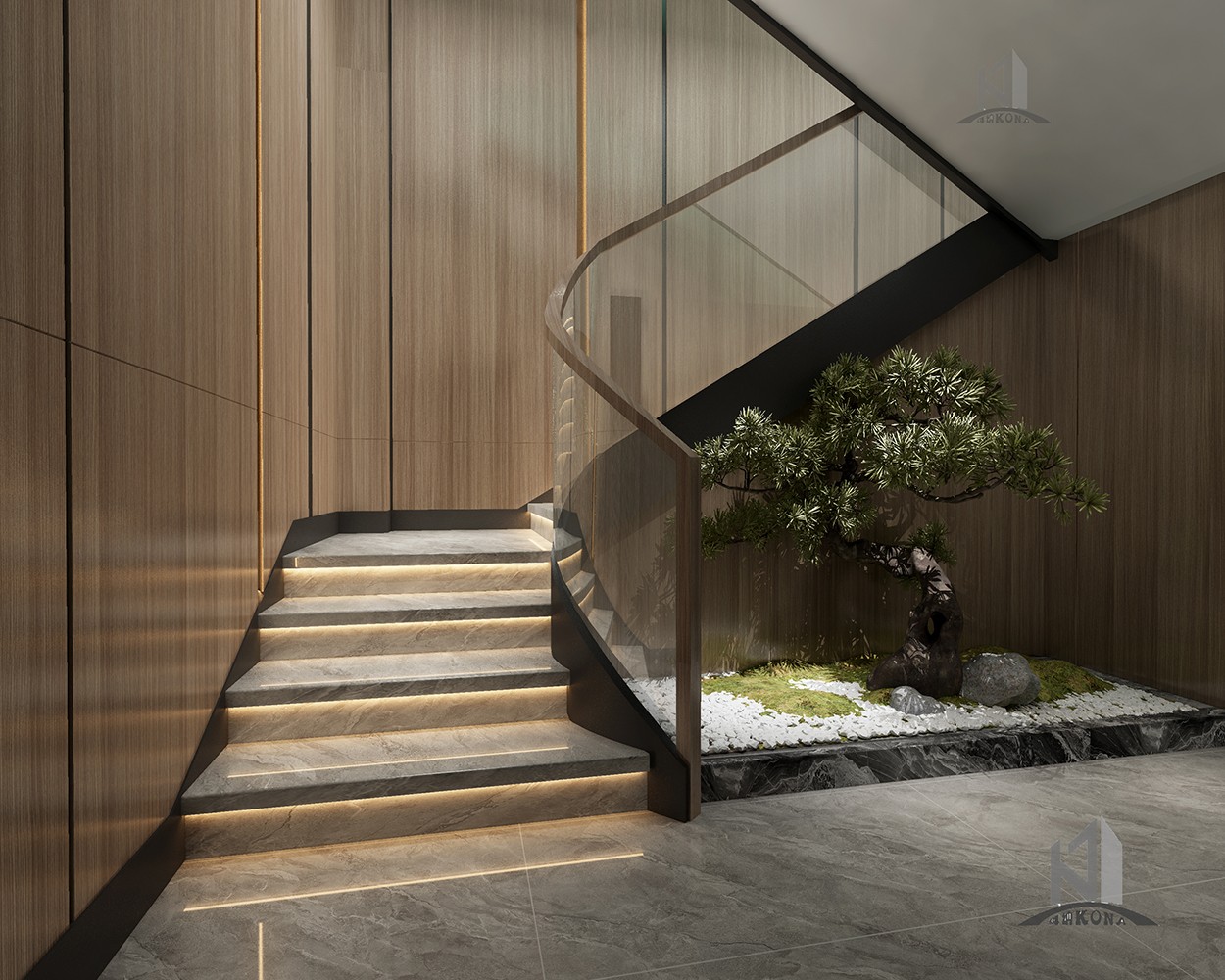 設(shè)計理念:傳統(tǒng)企業(yè)融合時代新審美辦公室設(shè)計,大塊面的灰色系大理石穿插現(xiàn)代感的線條構(gòu)建了大家對于公司的初見印象,然而這種高級的現(xiàn)代感或許會顯得冰冷。但加上了深棕色的實(shí)木就又為公司的前臺注入了儒雅、沉淀與質(zhì)樸的大氣,無論時空如何轉(zhuǎn)換,刻在中國人骨子里的中式風(fēng)骨,千百年后依然在我們的設(shè)計語言中,獵獵作響。辦公室頂面用線條強(qiáng)調(diào)虛實(shí)及縱深,以實(shí)木構(gòu)件表達(dá)建筑語言,干凈簡潔的辦公區(qū)域加上了更加濃墨重彩的傳統(tǒng)中式風(fēng)格細(xì)節(jié),于寂靜無聲中展露中國歷史人文的厚重,還有更多現(xiàn)代與傳統(tǒng)融合的可能性。會議室呈簡潔大氣,端莊肅穆的風(fēng)格,彌漫著一點(diǎn)莊重的儀式感,深棕色、灰色、白色互相融合搭配,這個色系顯得純粹而有力量,在純凈的空間里,人們更容易獲得精神的沉淀,也更容易探尋到真誠的本質(zhì)。除此之外,利用巨大的落地窗,可以減輕空間的沉悶,中和會議室的氛圍。