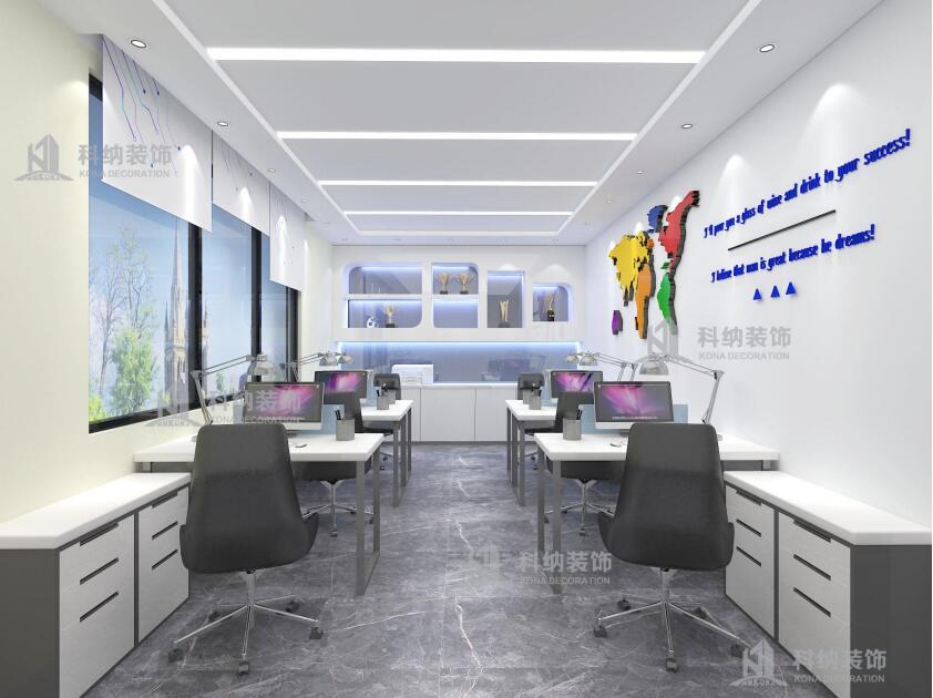 設(shè)計理念:此裝修設(shè)計項目是新思維教育集團廣州培訓(xùn)中心,新思維是一家致力于青少年腦力開發(fā)和推廣的專業(yè)教育培訓(xùn)機構(gòu)。是國內(nèi)專業(yè)、權(quán)威的記憶培訓(xùn)機構(gòu),被譽為“中國全腦教育第一品牌”。此案例設(shè)計師根據(jù)與客戶溝通了解把培訓(xùn)中心劃分為教室、辦公區(qū)、咨詢室、接待區(qū)以及活動中心幾大板塊。以深藍色和白色為主色調(diào),打造一個簡潔穩(wěn)重的形象,明亮輕快搭配傳播充滿活力的教學(xué)氛圍,明確標識教學(xué)理念,局部用公司LOGO去展示整個企業(yè)的品牌,做到獨一與唯一。通過嚴謹?shù)陌盐湛臻g的尺度和情感氛圍,讓孩子能夠在安靜舒適的情緒環(huán)境下進行學(xué)習(xí)。