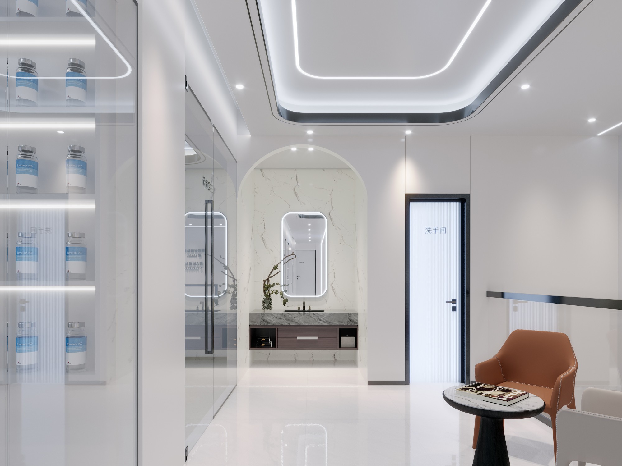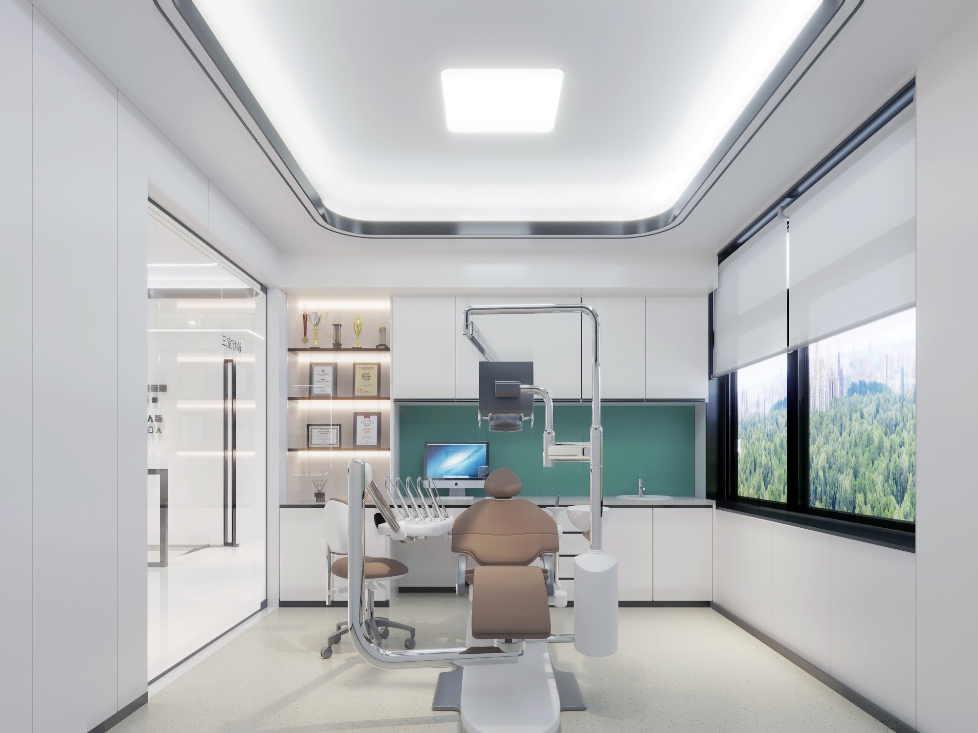 設(shè)計理念:融合科技質(zhì)感的材料元素,強(qiáng)調(diào)收納設(shè)計的標(biāo)準(zhǔn)化,營造清新簡潔、光亮通透的空間氛圍,同時注重空間色彩搭配和細(xì)節(jié)處理,打破傳統(tǒng)醫(yī)療空間形象,呈現(xiàn)出新型高端醫(yī)療空間設(shè)計趨勢。將潔白、健康的護(hù)齒理念融合當(dāng)代美學(xué),在細(xì)節(jié)上強(qiáng)調(diào)收納設(shè)計的標(biāo)準(zhǔn)化,每個細(xì)微局部遵循“不多余、重質(zhì)感”的裝飾原則,同時融入科技質(zhì)感的材料元素,從設(shè)計語言上構(gòu)建。
